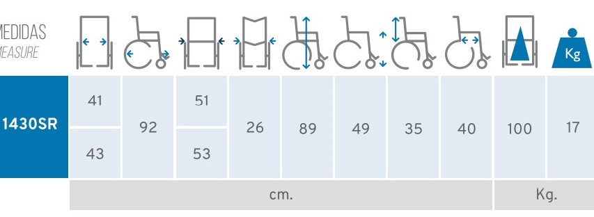 Cadeira de rodas muito estreita com rodas traseiras autopropulsoras.CARACTERÍSTICAS
